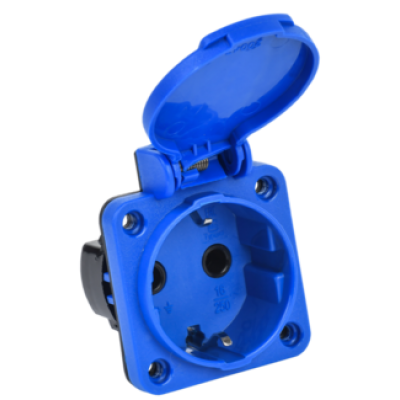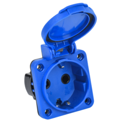 IEK MAGNUM Розетка панельная SCHUKO РП17-3 с увеличенным фланцем IP54 синий