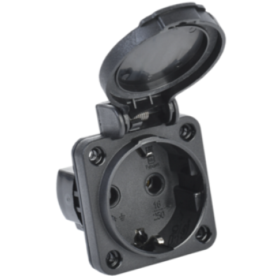IEK MAGNUM Розетка панельная SCHUKO РП14-3 с крышкой IP54 черный