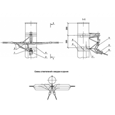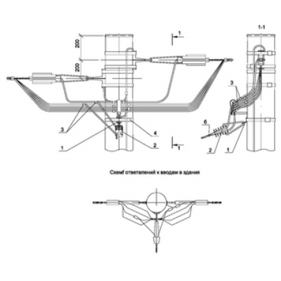 IEK Ответвление в одну сторону СИП4-2 к вводам в здание от промежуточной одноцепной деревянной опоры