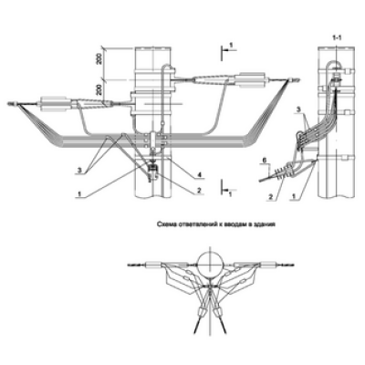IEK Ответвление в две стороны 2хСИП4-2 к вводам в здание от промежуточной одноцепной деревянной опоры